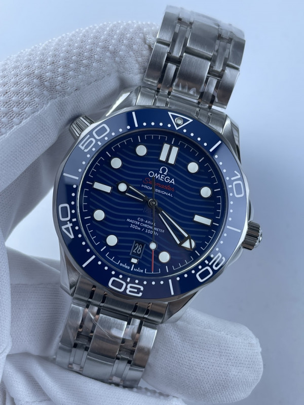 (준비완료/특급배송)NO.1320/VS공장 오메가 씨마스터 다이버 300 스틸 블루다이얼 러버밴드