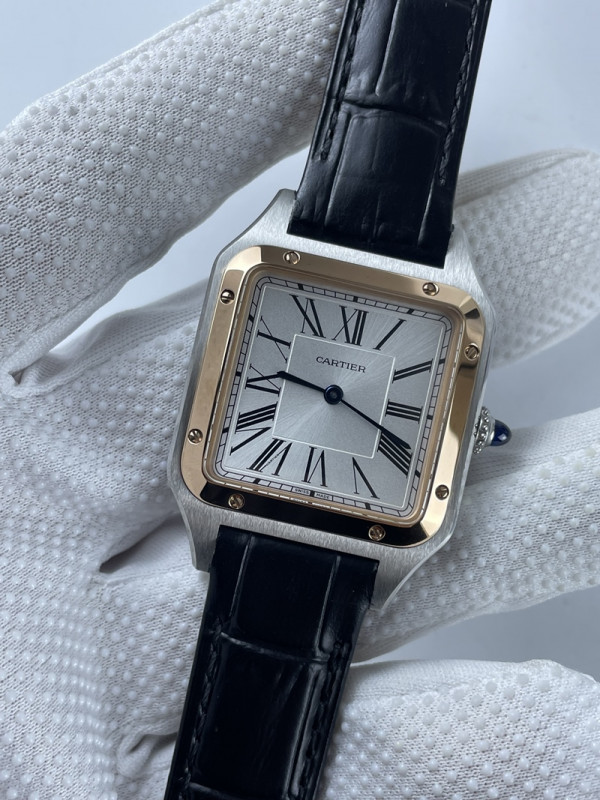 (준비완료/특급배송)NO.2174/AF공장 산토스31MM 실버다이얼 블루악어가죽스트랩