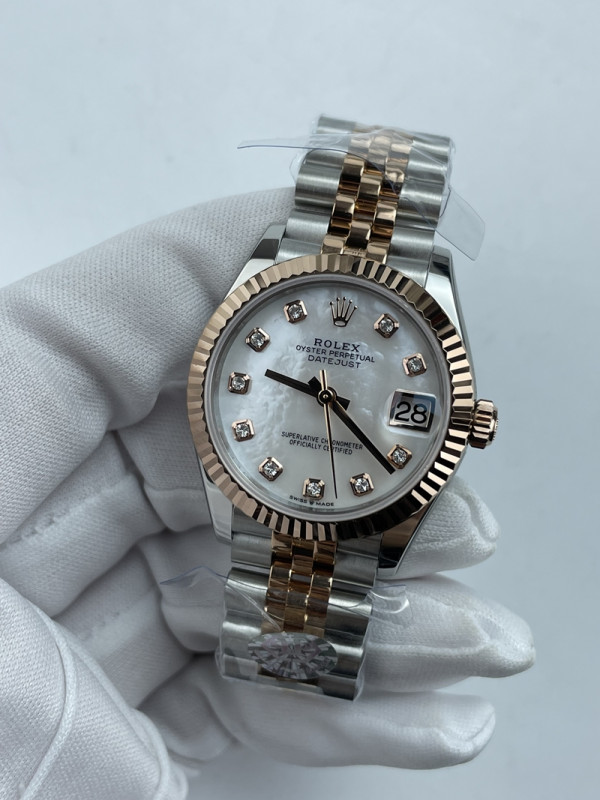 (준비완료/특급배송)NO.3606/롤렉스 데이저스트 31mm 여성용 시계 로즈골드 콤비 자개다이얼 플루티드 베젤 쥬빌레 밴드 (QP공장)